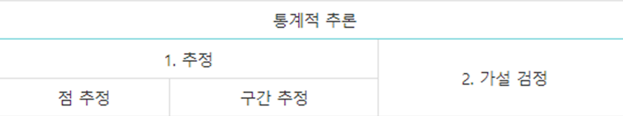 - 모집단으로부터 추출된 표본의 표본통계량으로부터 모집단의 특성인 모수에 관해 통계적으로 추론하는 통계