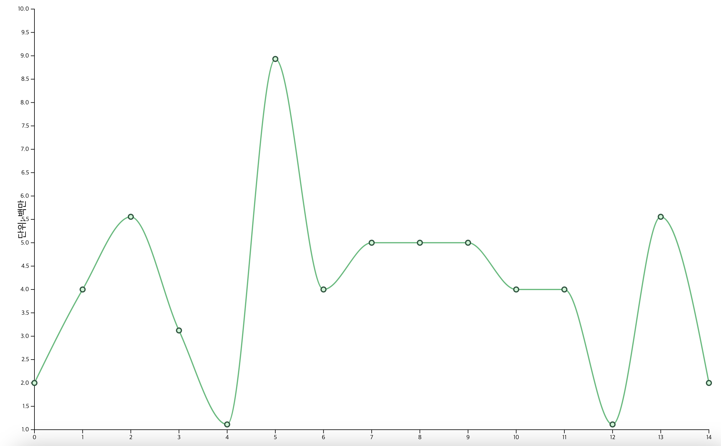 선 그래프를 생성하는 함수를 만든다. 데이터의 x와 y 값을 스케일에 매핑하고 커브를 준다.