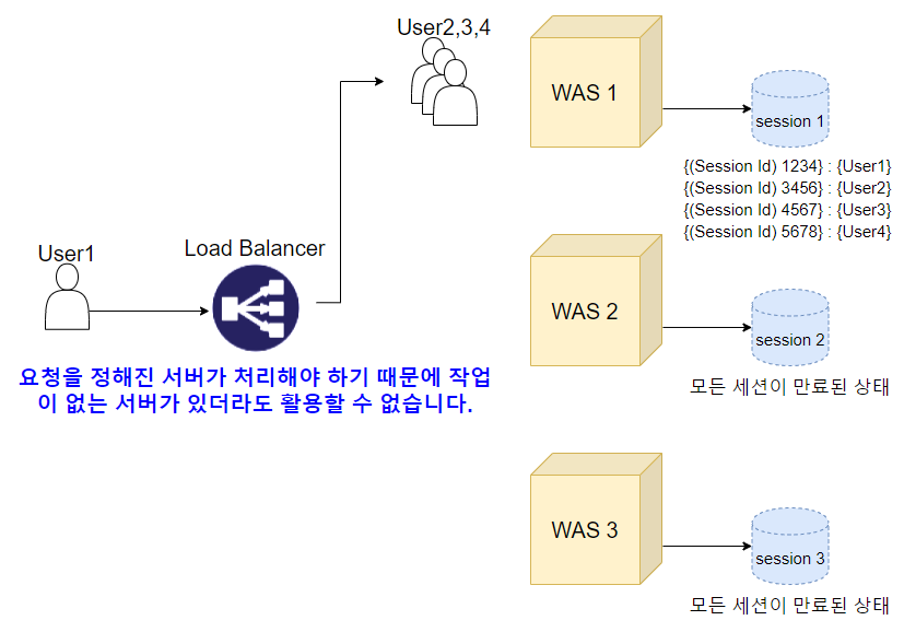 이러한 상황일 때 Session Clustering을 통해 여러 WAS의 Session이 모두 공유되도록 한다.