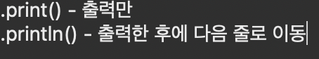 // .println() - 출력한 후에 다음 줄로 이동