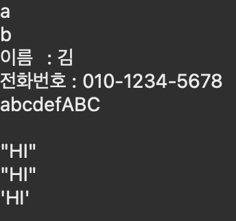 // - 문자열에서 실행하고자 하는 위치에 \를 적고 기능에 맞는 문자를 적어주면 된다
