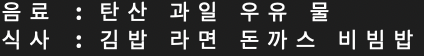 '식사':['김밥', '라면', '돈까스', '비빔밥']}
