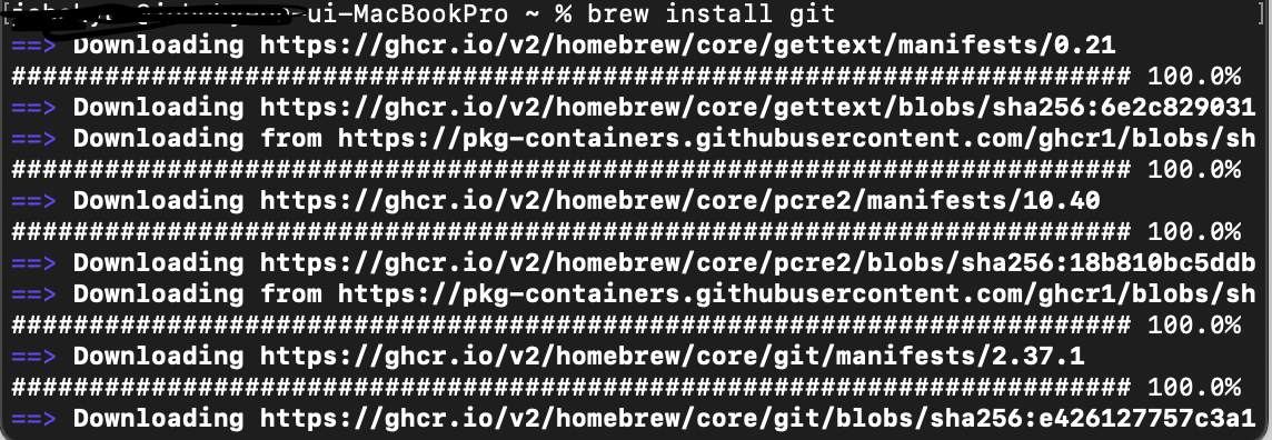 이후 터미널에 위와 같은 명령어를 입력하면 자동으로 git 설치가 완료된다