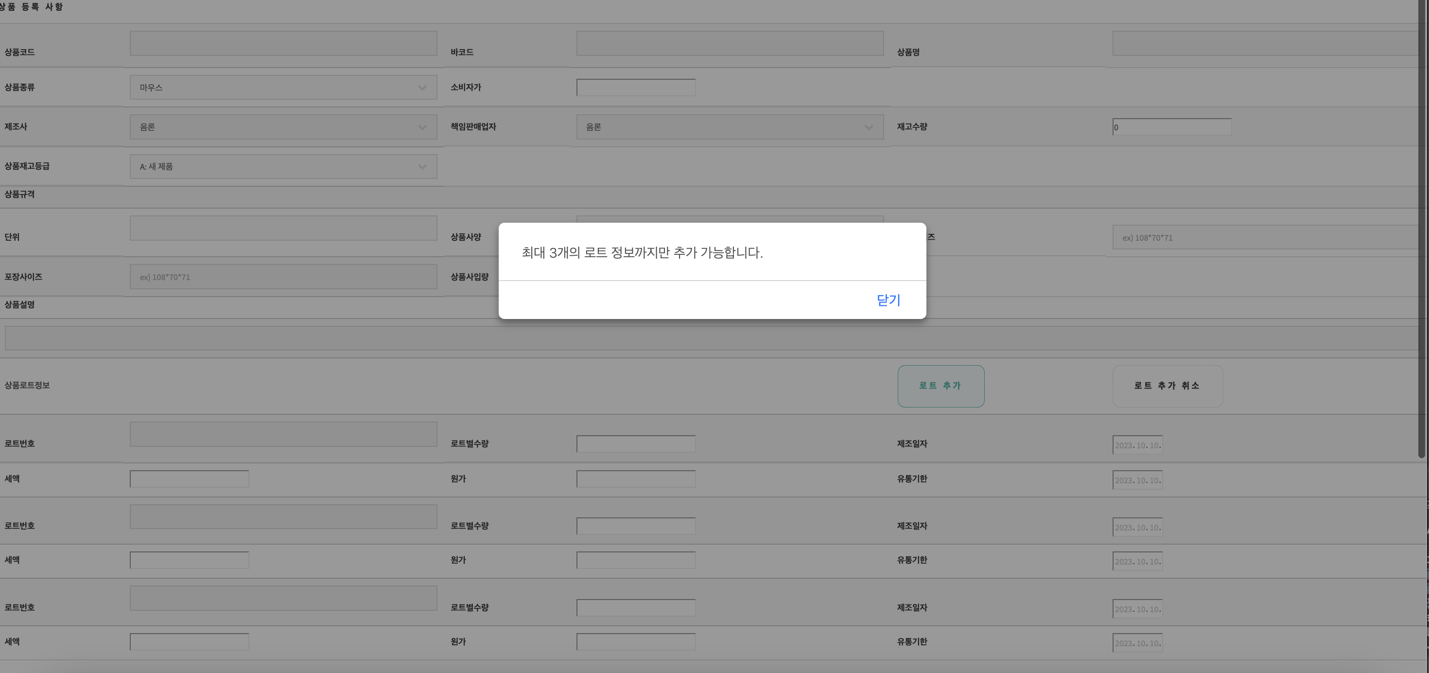 alert("최대 3개의 로트 정보까지만 추가 가능합니다.");